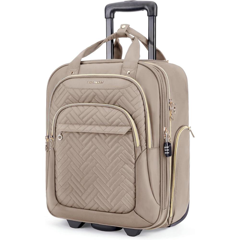 Convenient Carry-On Underseat Size:BAGSMART small 16-inch carry-on luggage is airline-approved for underseat use, fitting under most airplane seats and in overhead bins. External dimensions: 17.16″ x 12.99″ x 7.09″. Weighing 5.51 lbs, this small carry-on suitcase is designed for effortless travel,Capacity:25L