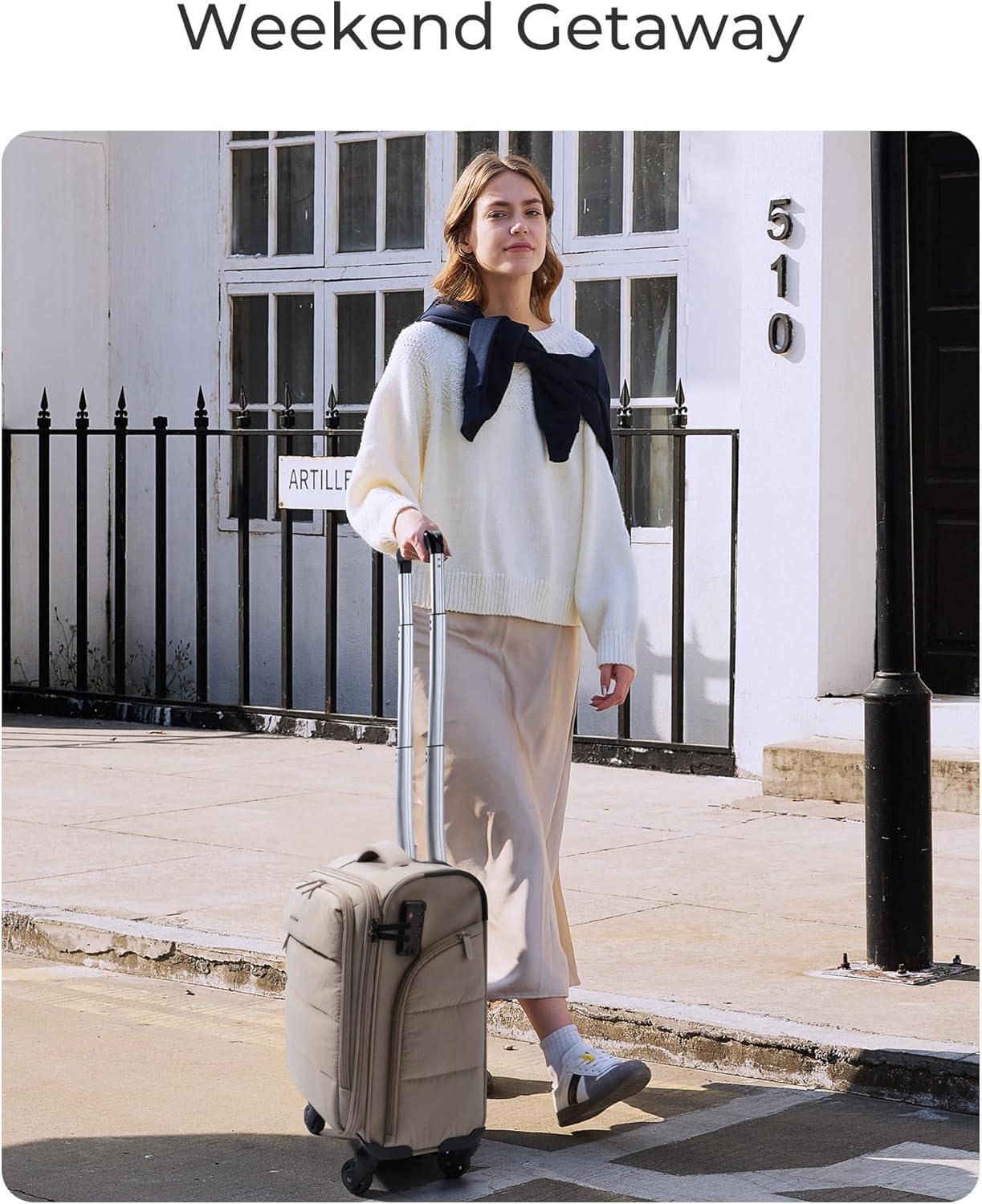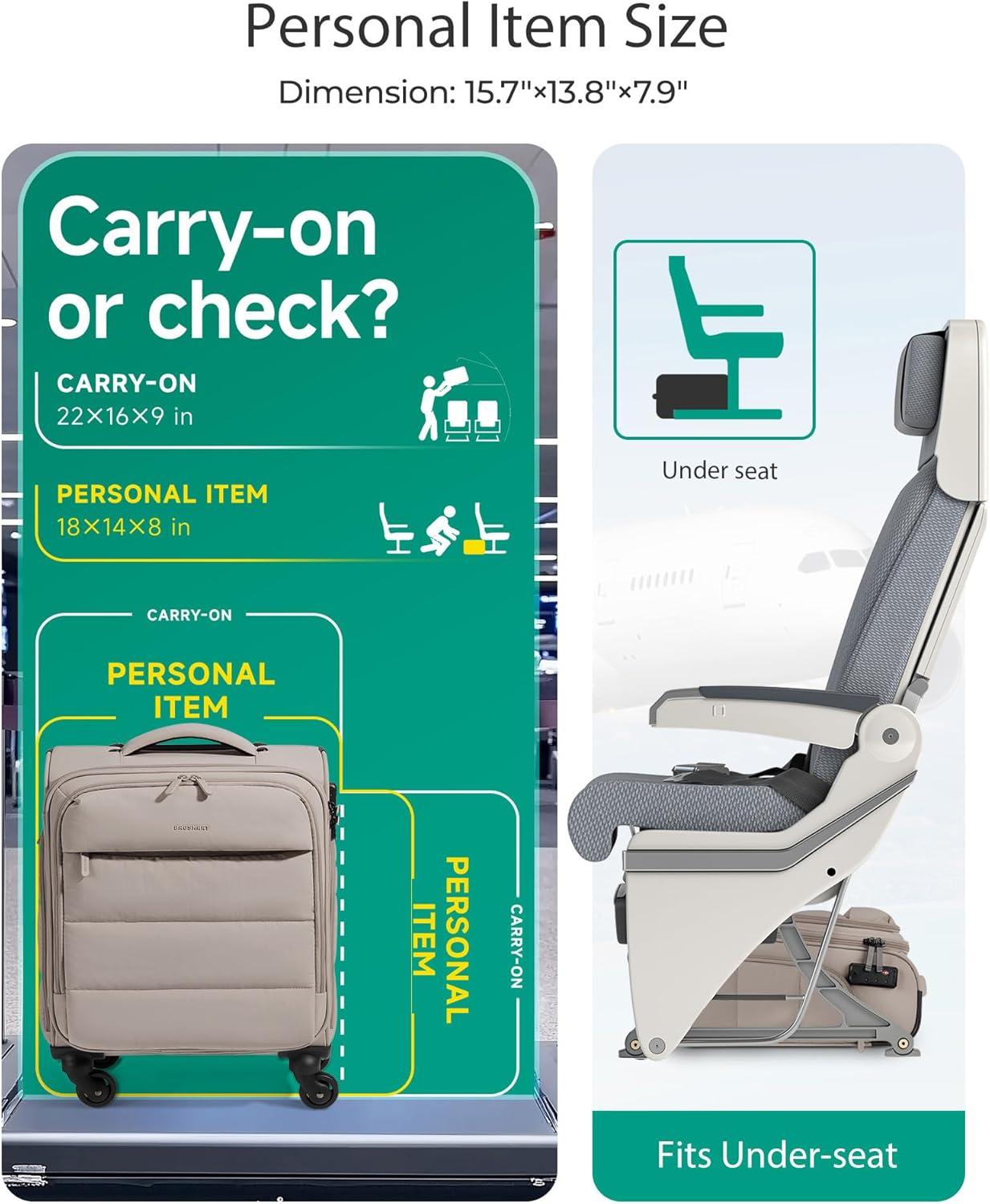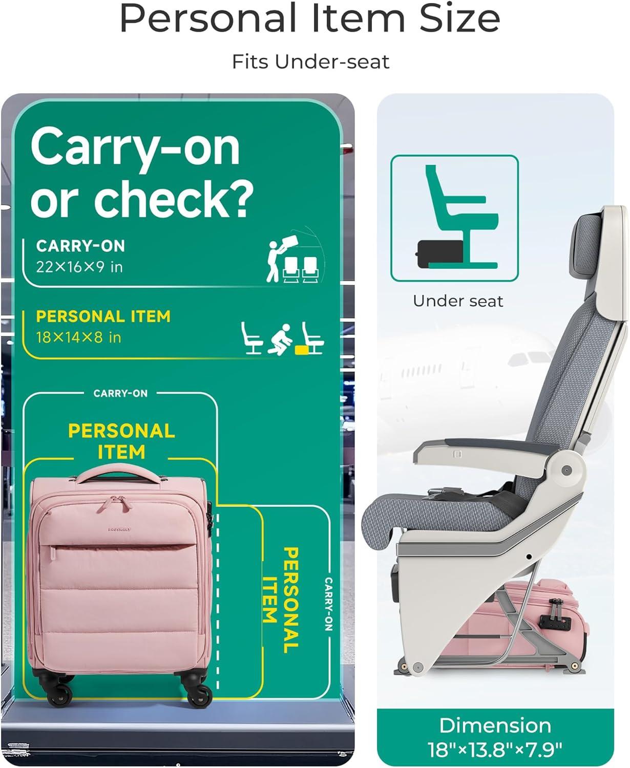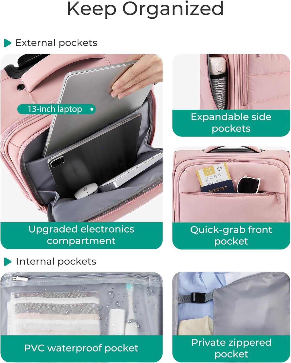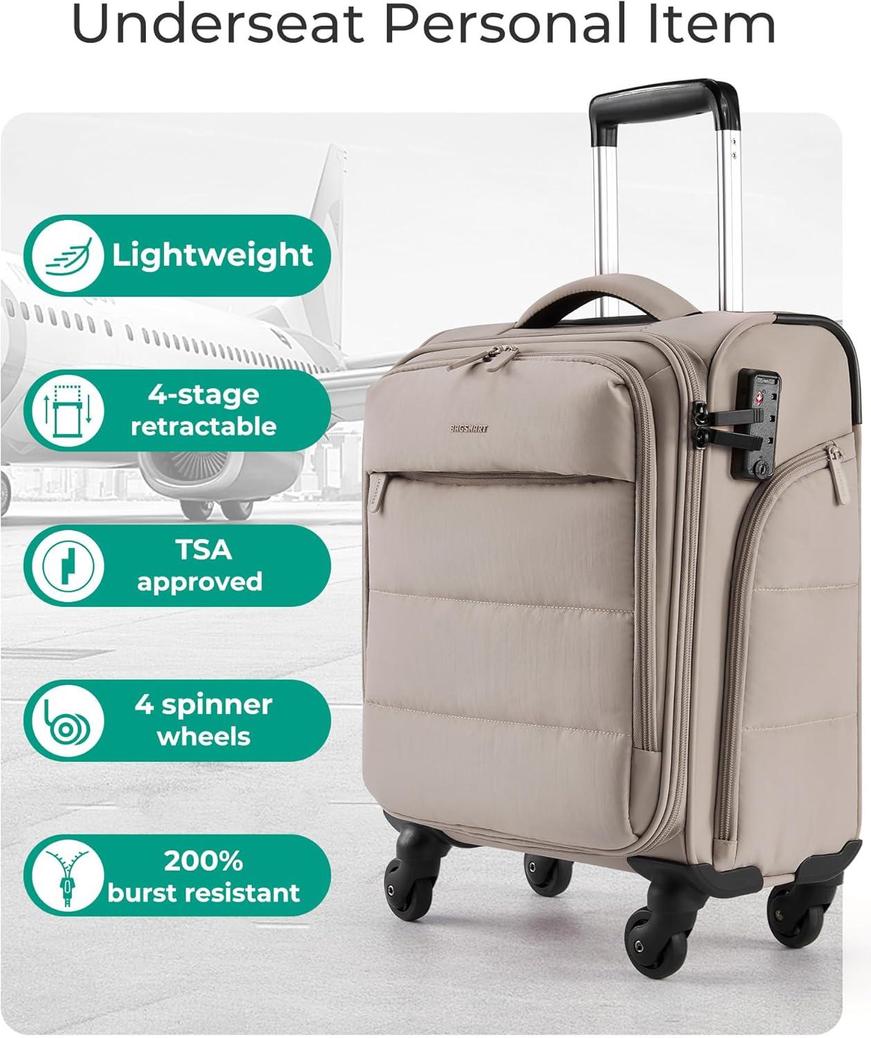 • BAGSMART Underseat Carry on Luggage with Wheels, Soft Underseat Travel Luggage with PVC Wet/Dry Pockets, Lightweight Soft Personal Item Suitcase for Short Trip, Pinkish Purple(Camel)